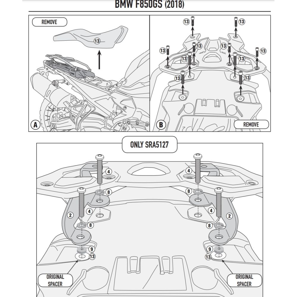 Metal plate under topcase Kappa/Givi for BMW F850GS, F750GS (stainless steel carrier)