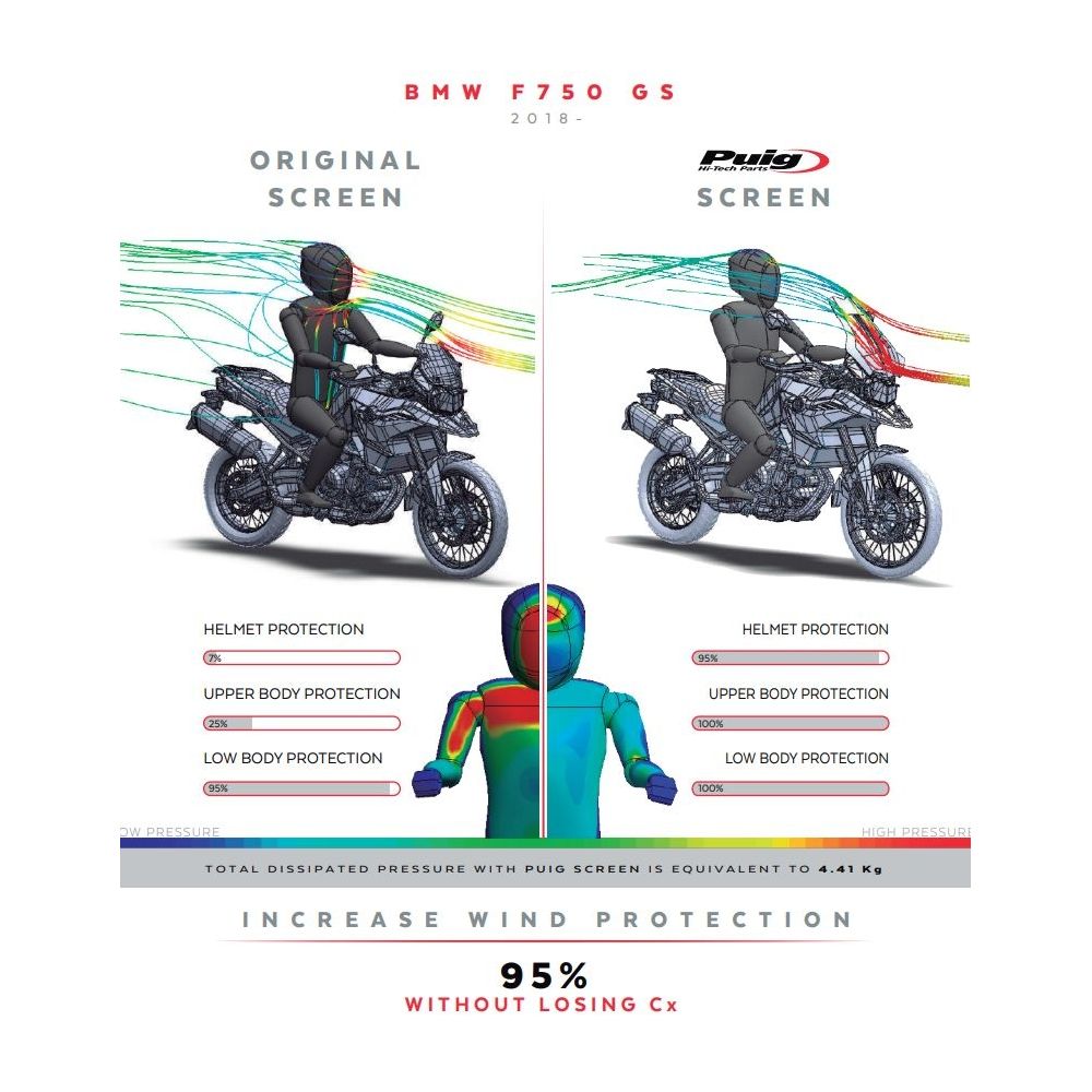 High travel plexiglass Puig 53cm for BMW F750GS, lightly smoked
