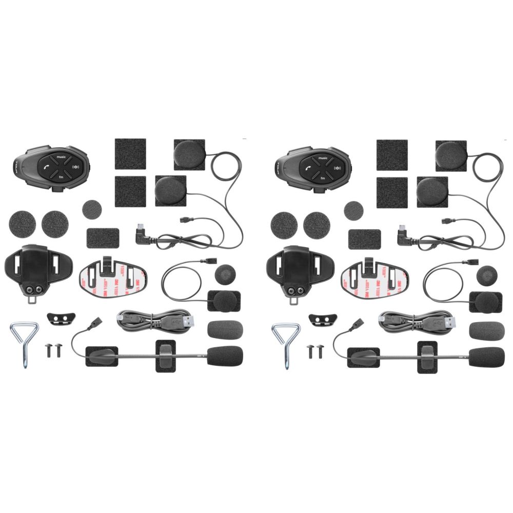 - 2 x microphone for jet and flip-up helmets + adhesive microphone for full-face helmets